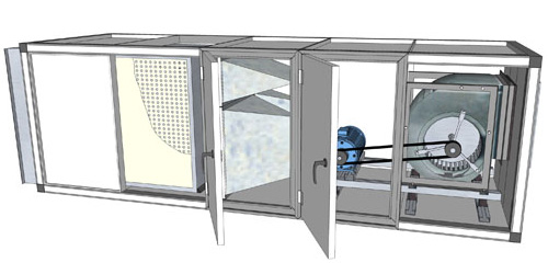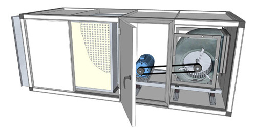 Klima komora za odsisavanje vazduha sa regulacionim demperom, grubim filterom i odsisnim ventilatorom