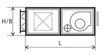 Klima komora za odsisavanje vazduha sa regulacionim demperom, prigušivačem buke, grubim filterom i odsisnim ventilatorom
